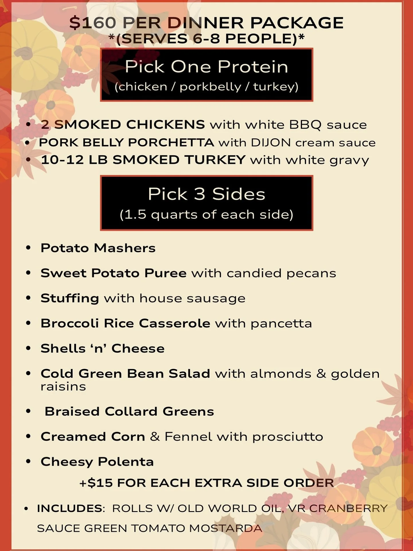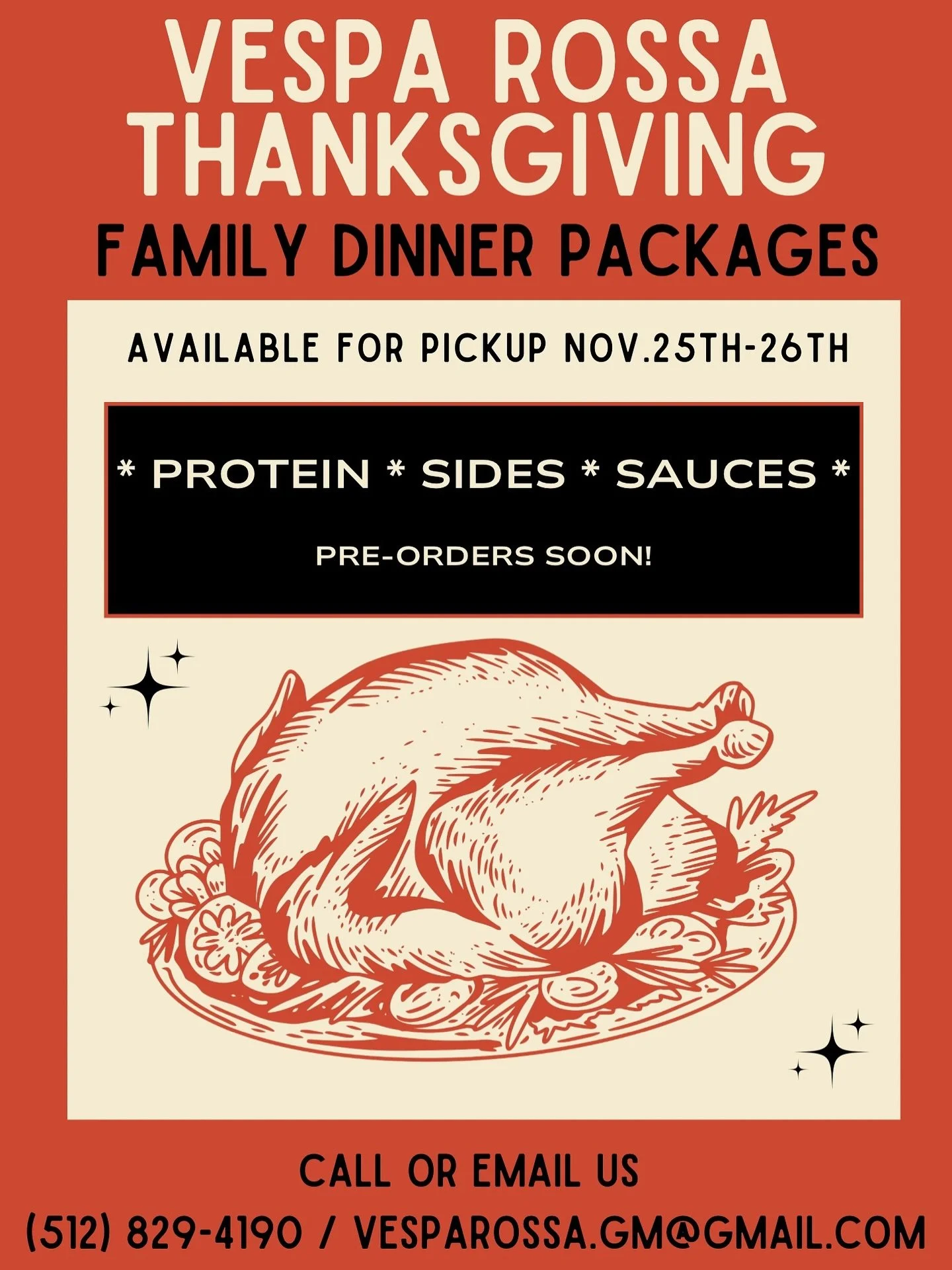 *Contact Vespa Rossa for Thanksgiving packages available for pick up 11/25/25 or 11/26/25*